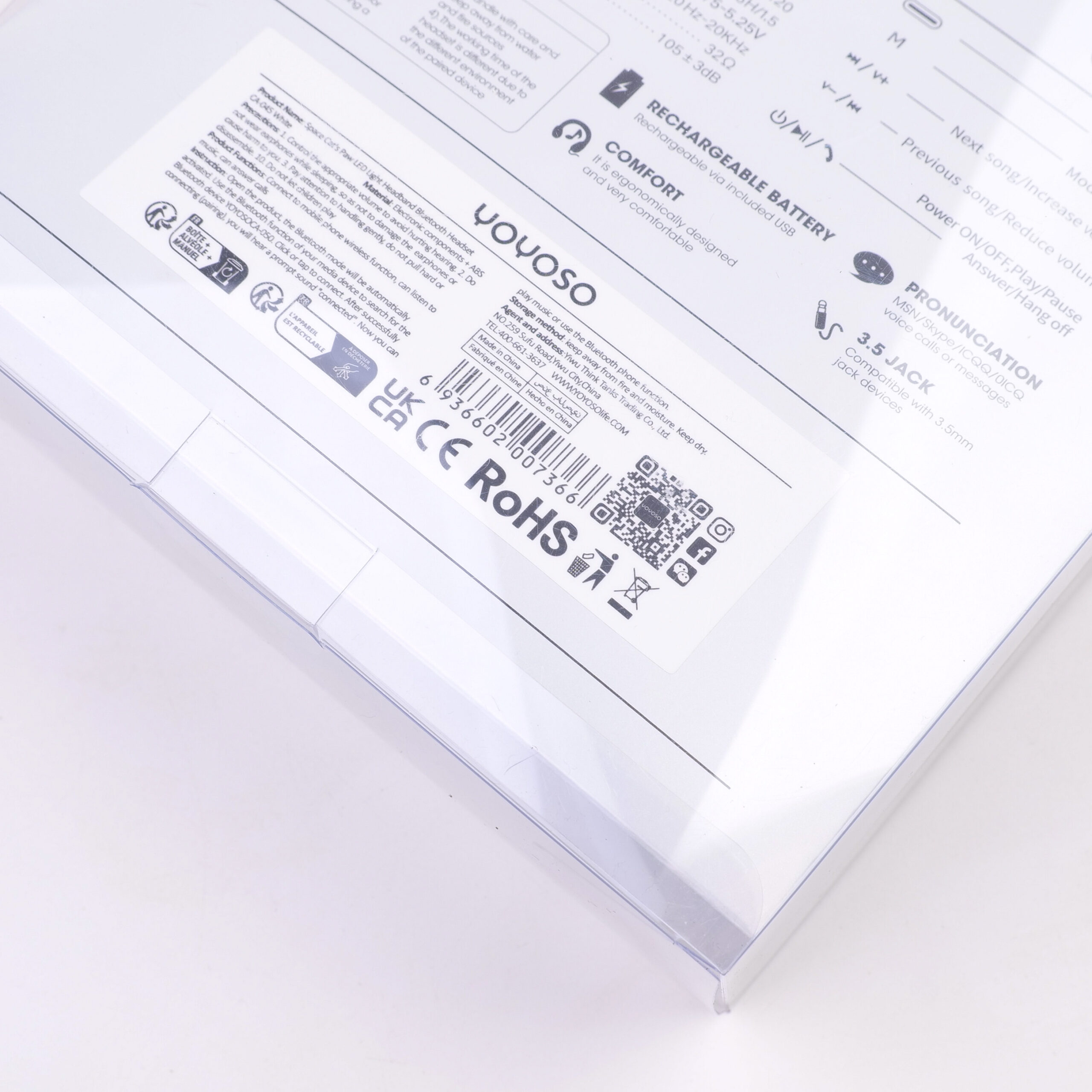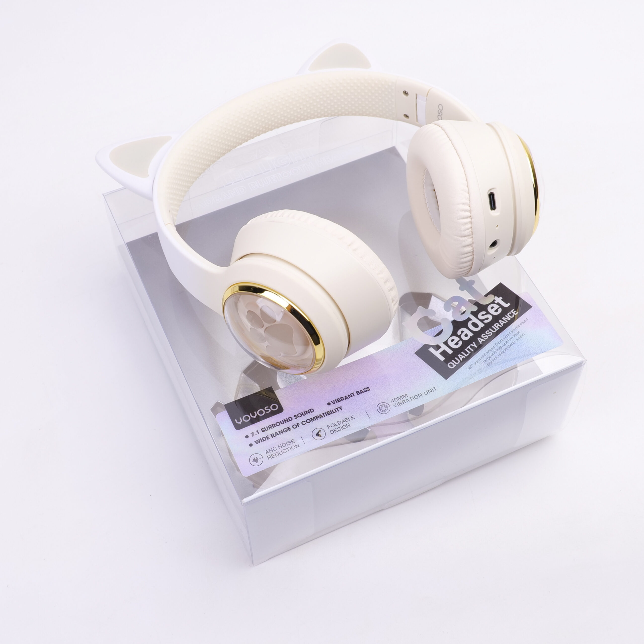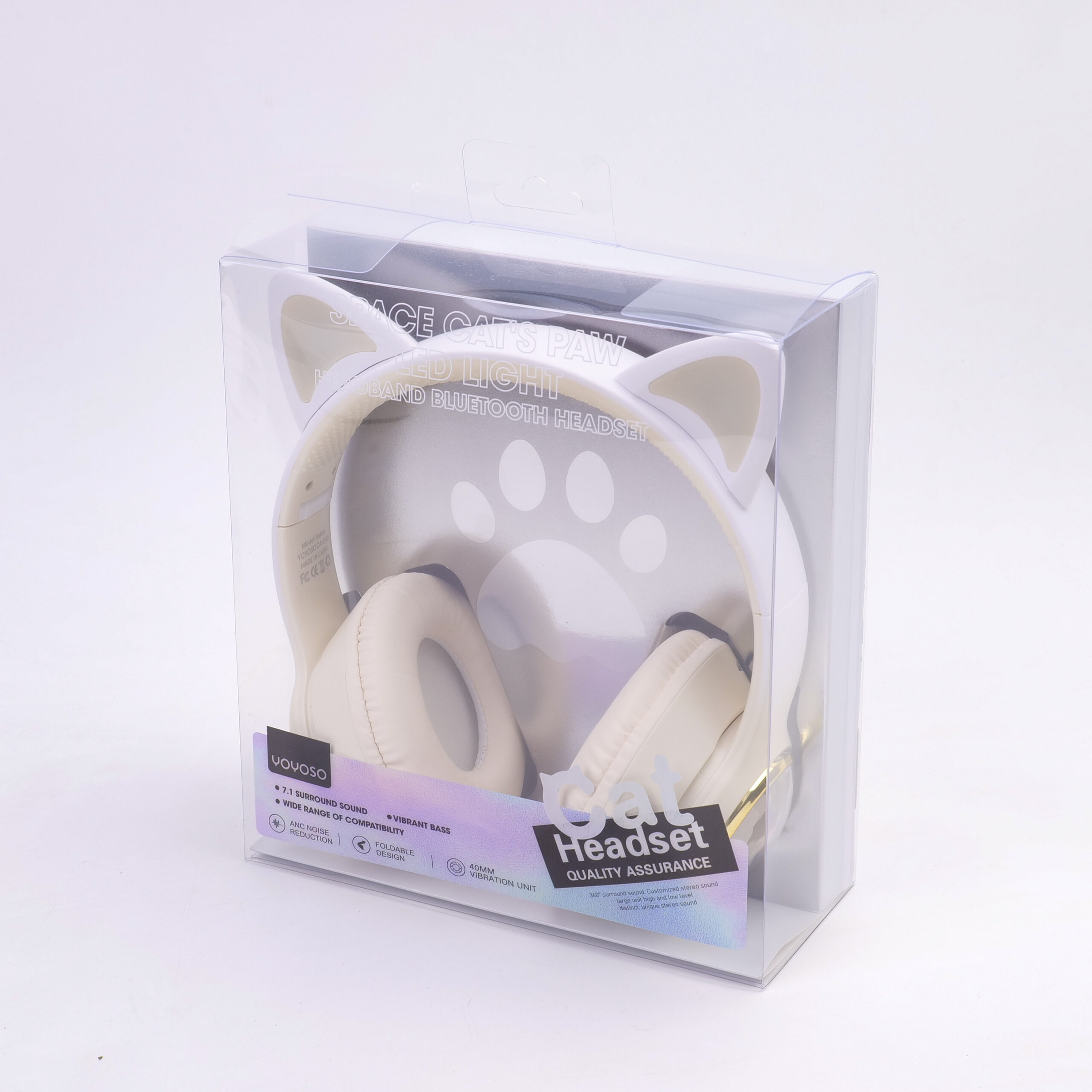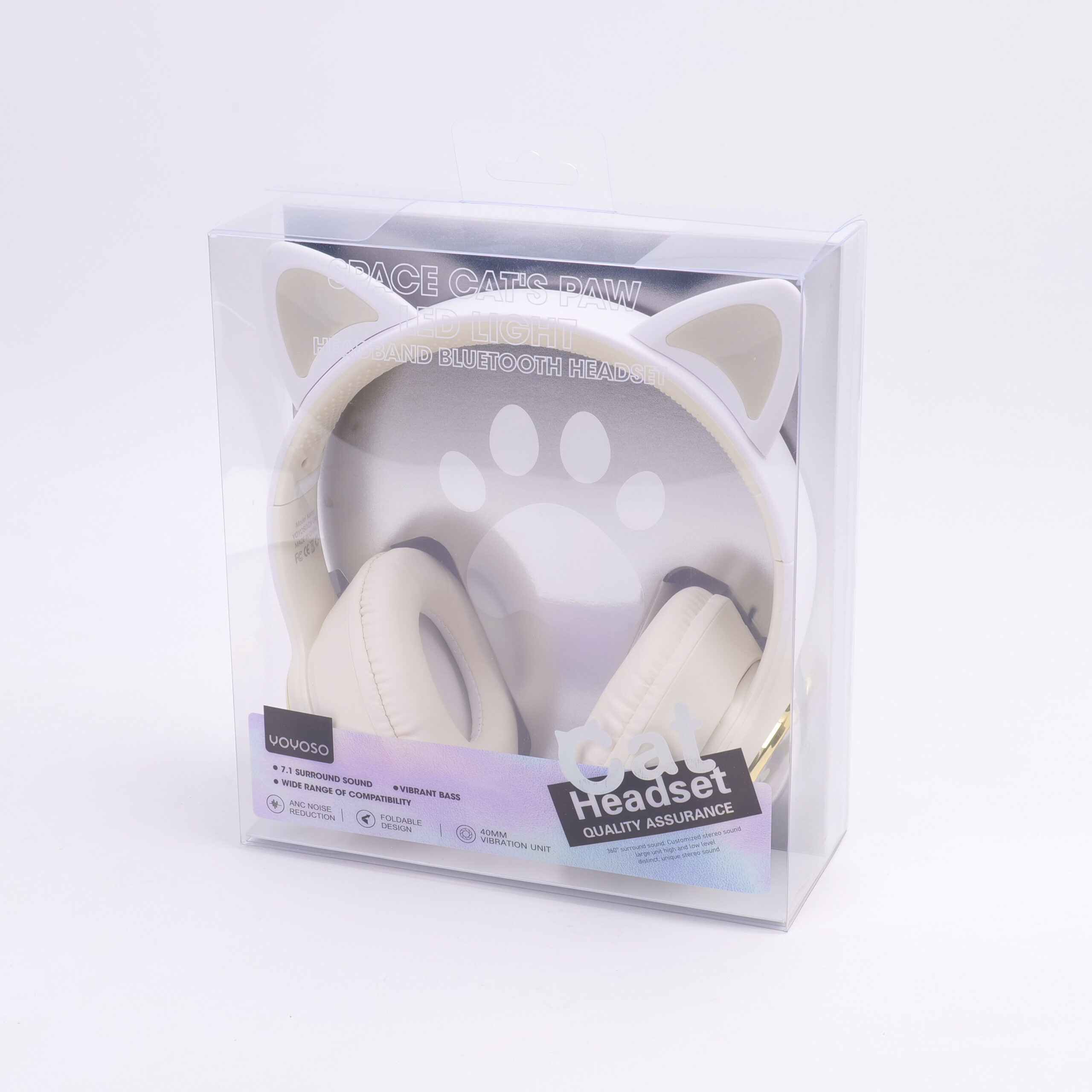 Ασύρματο Ακουστικό Bluetooth – Space Cat’s Paw LED Light – Λευκό – CA-045