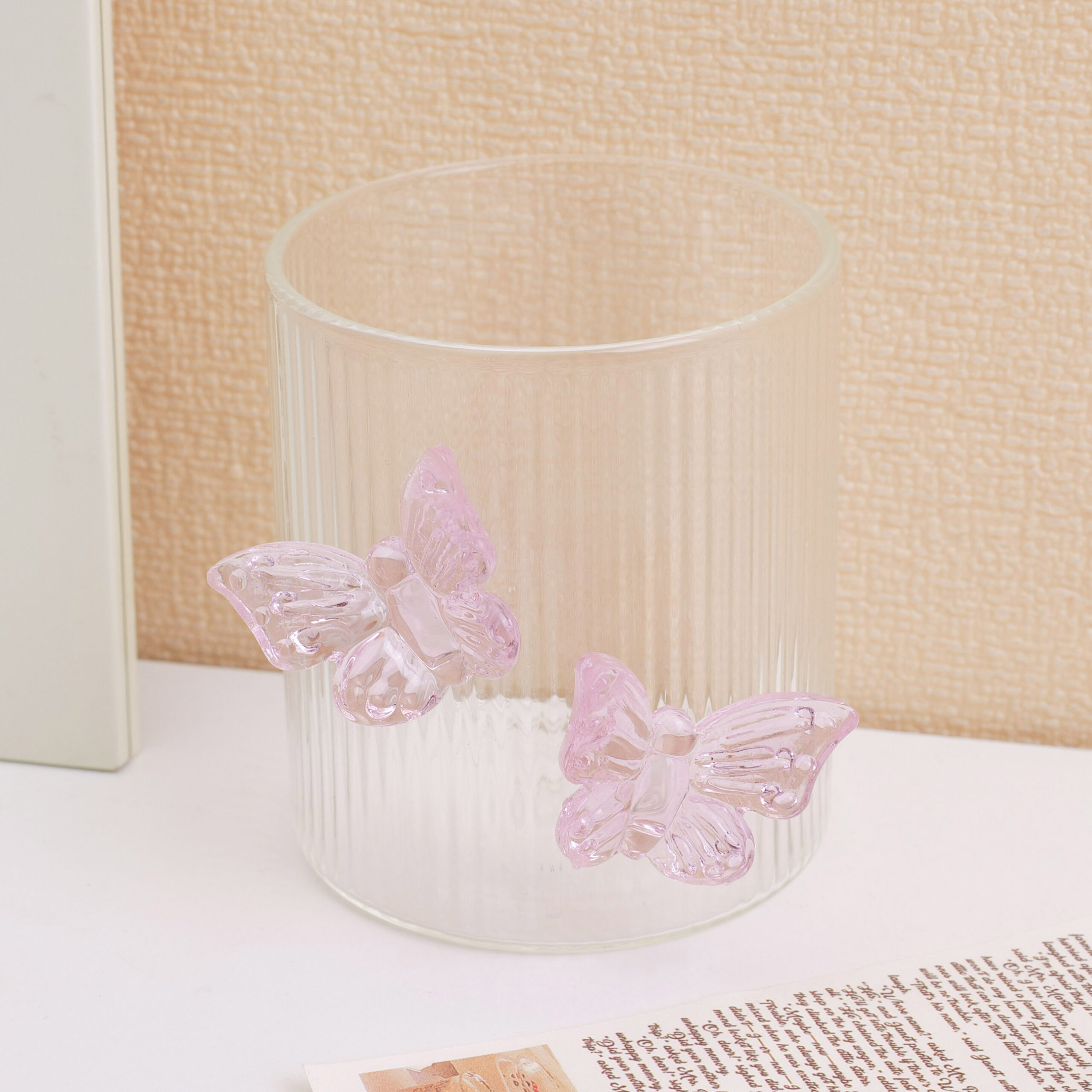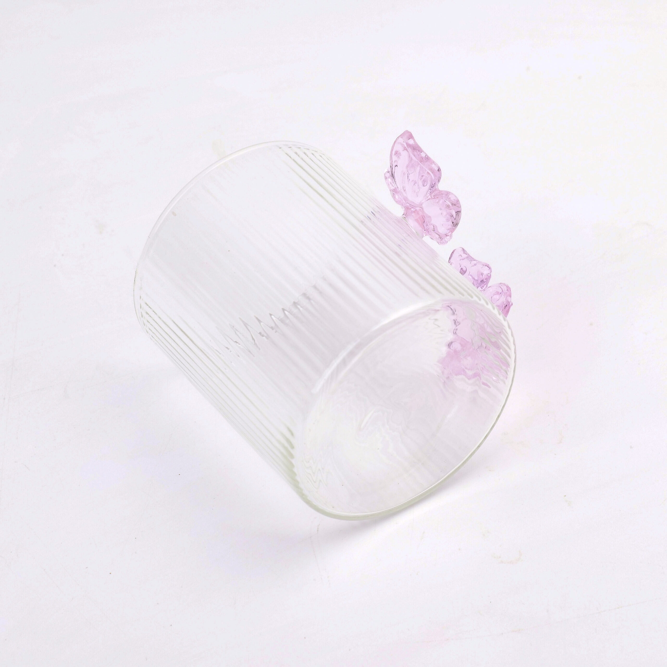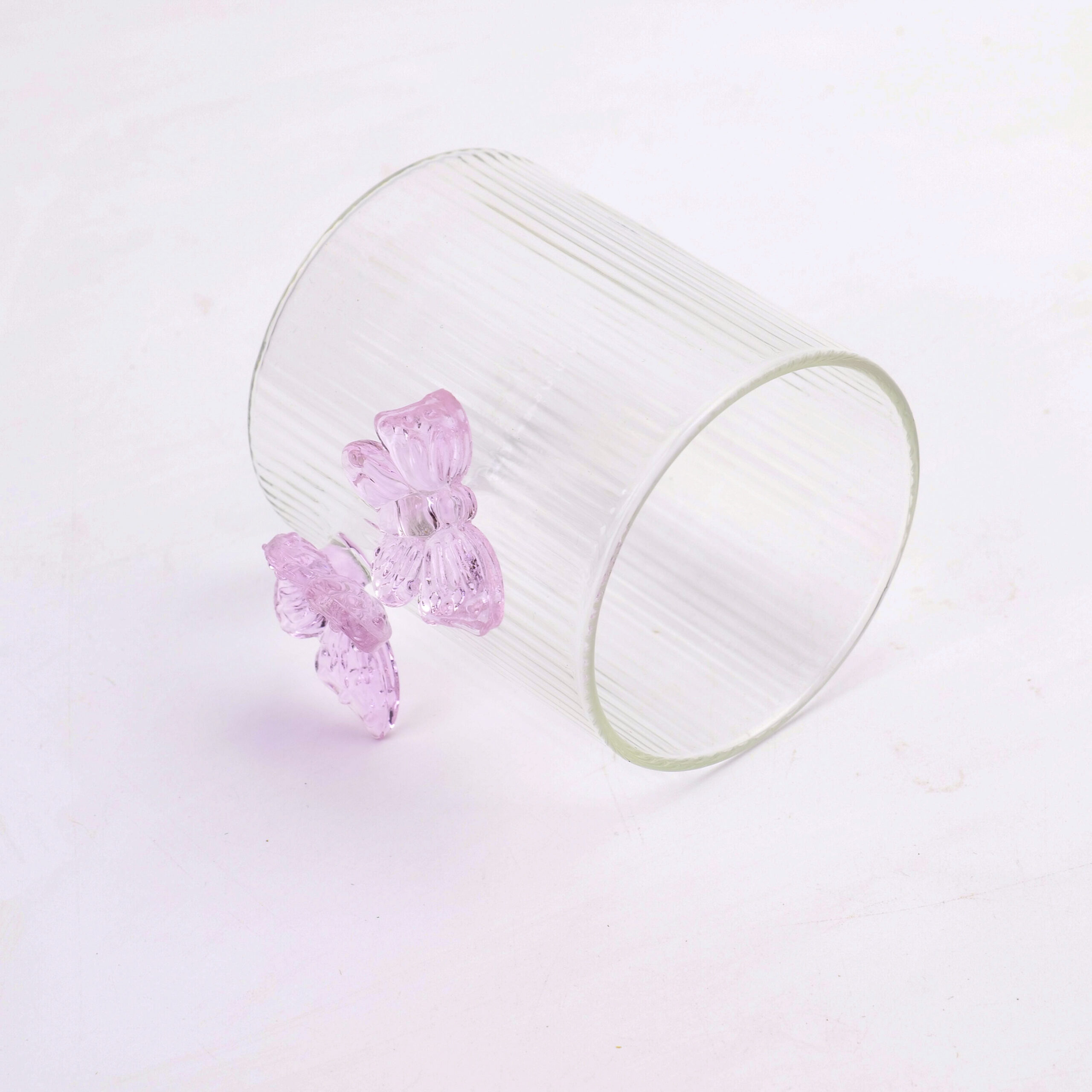 Γυάλινο ποτήρι με διπλή πεταλούδα και κάθετες ρίγες – 300 ml