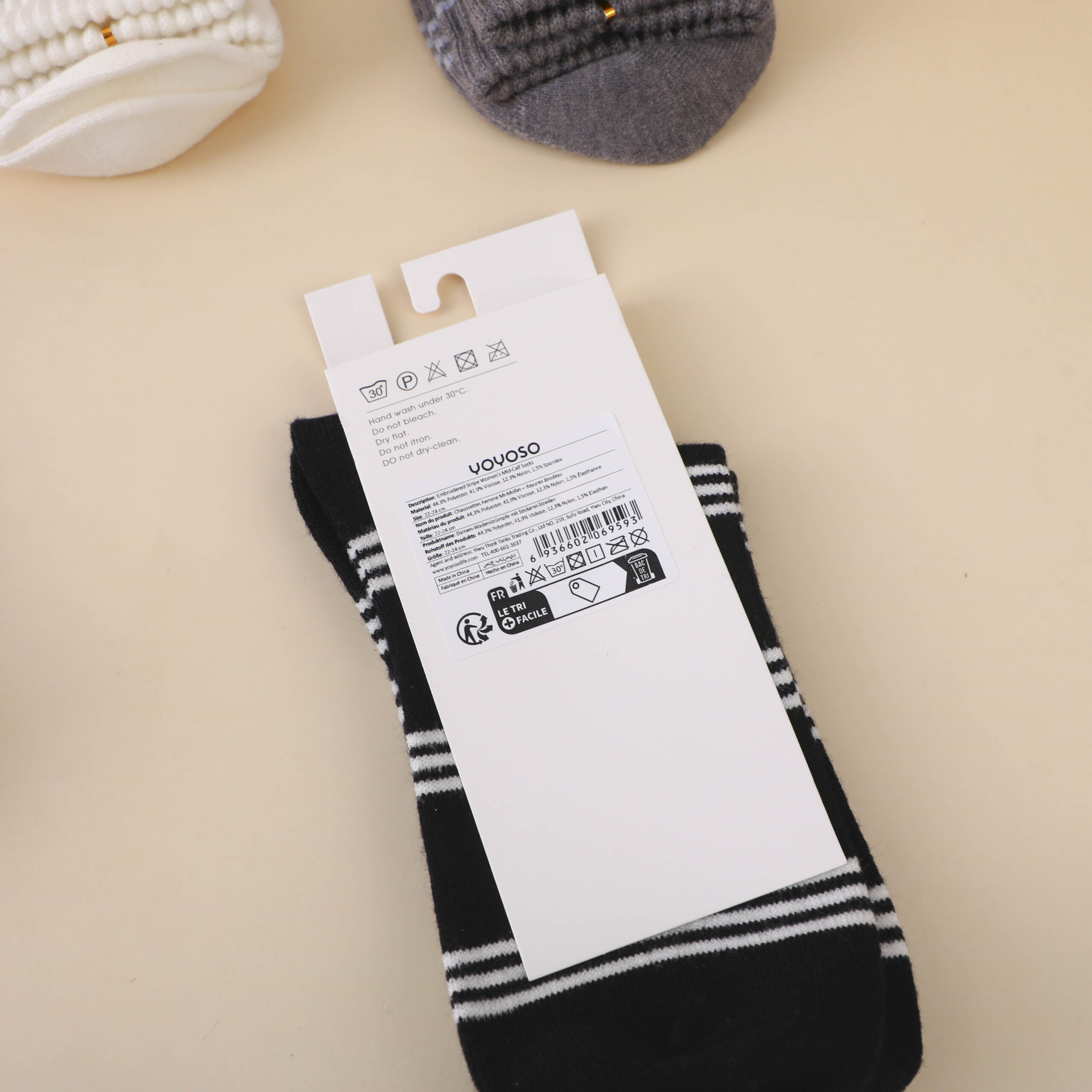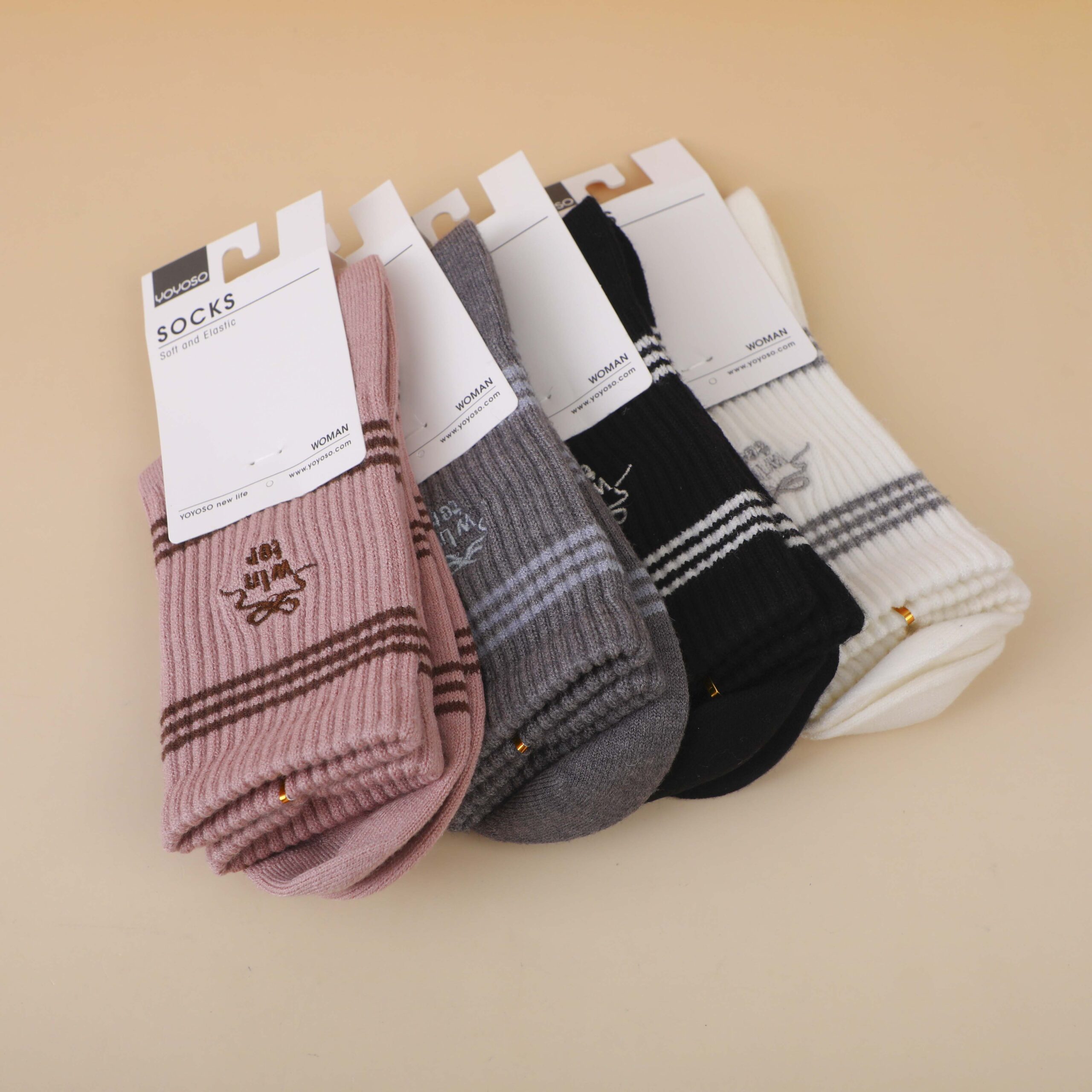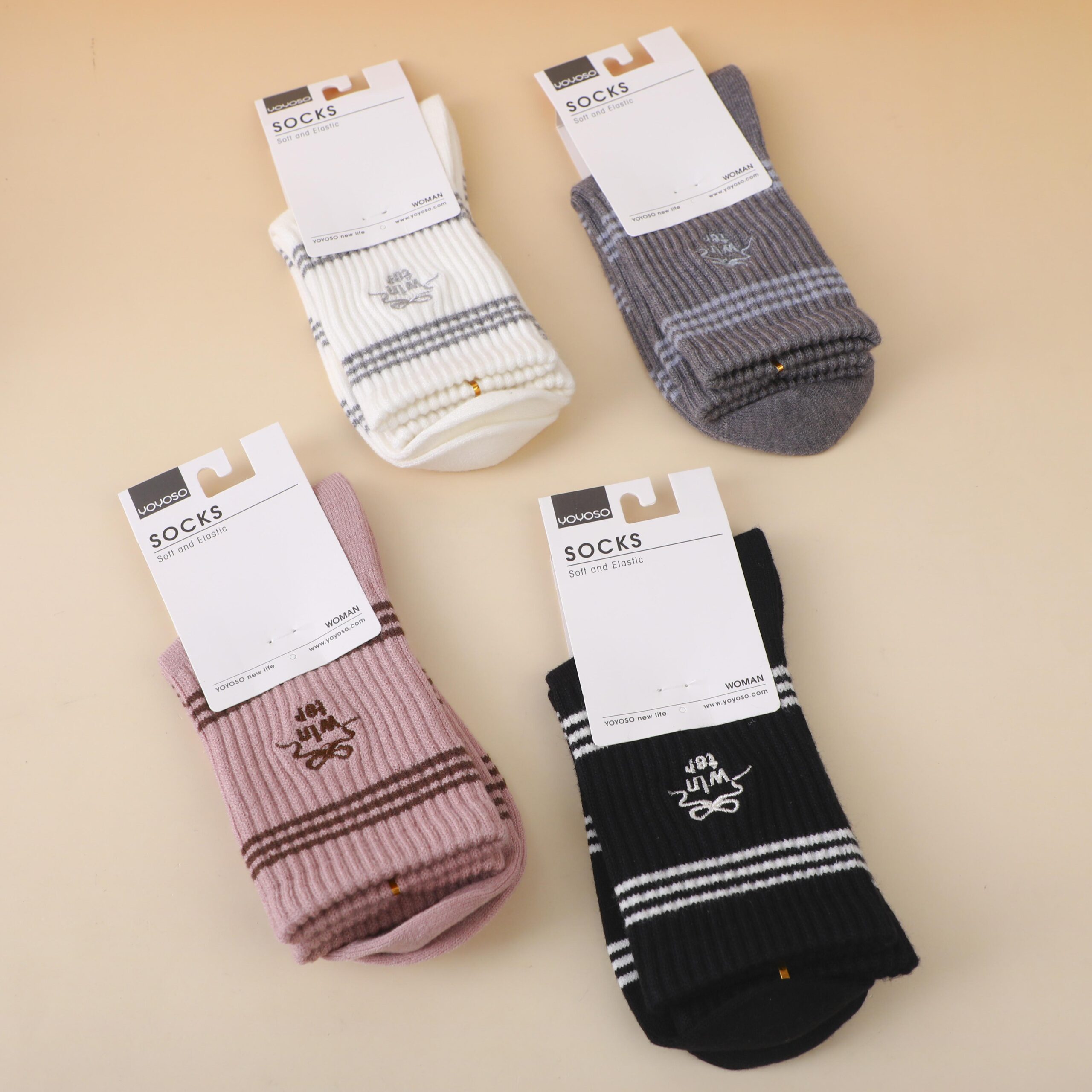 Γυναικείες κάλτσες με κεντημένες ρίγες μέχρι τη μέση της γάμπας