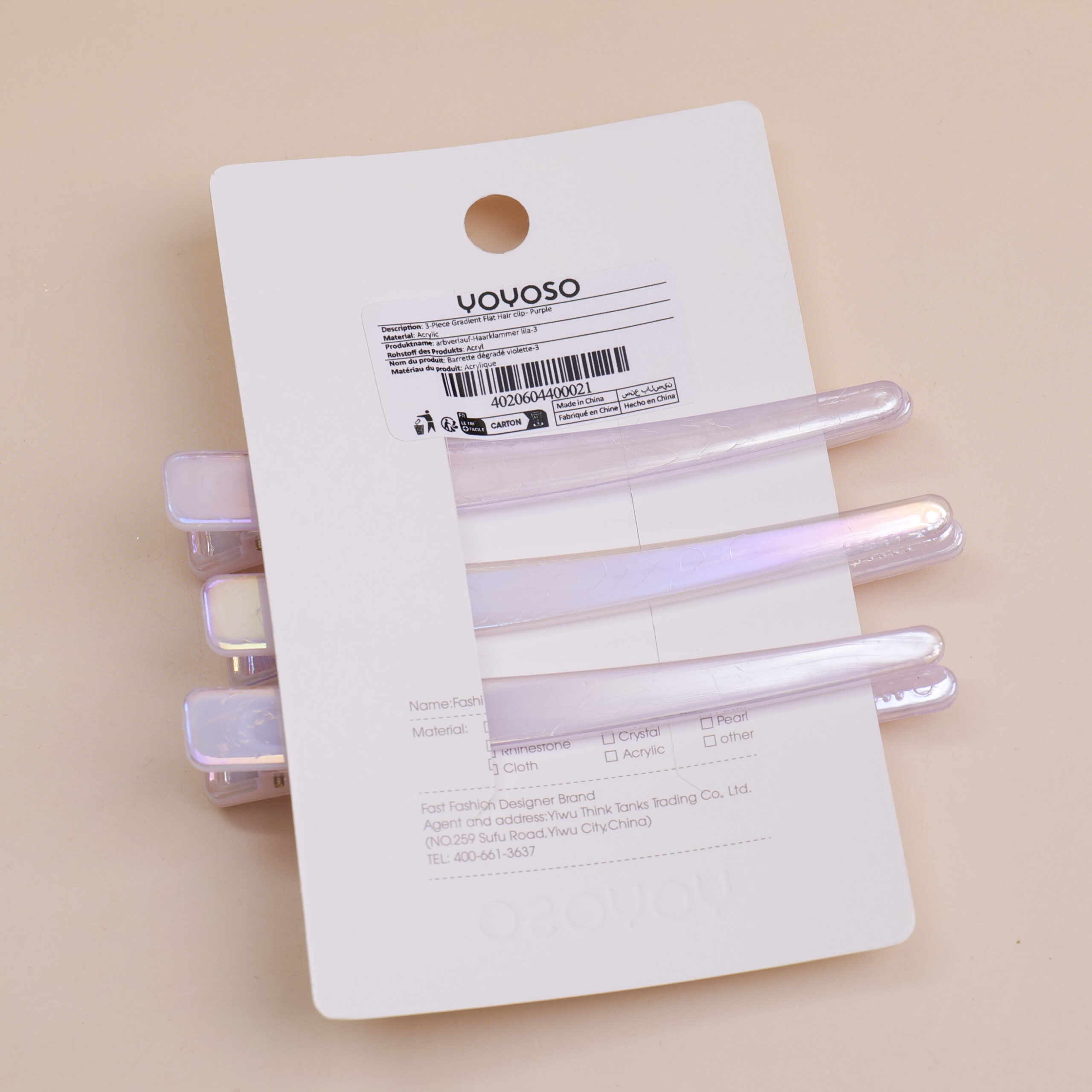 Κλιπ Μαλλιών Μονό – Μωβ 3 τεμάχια