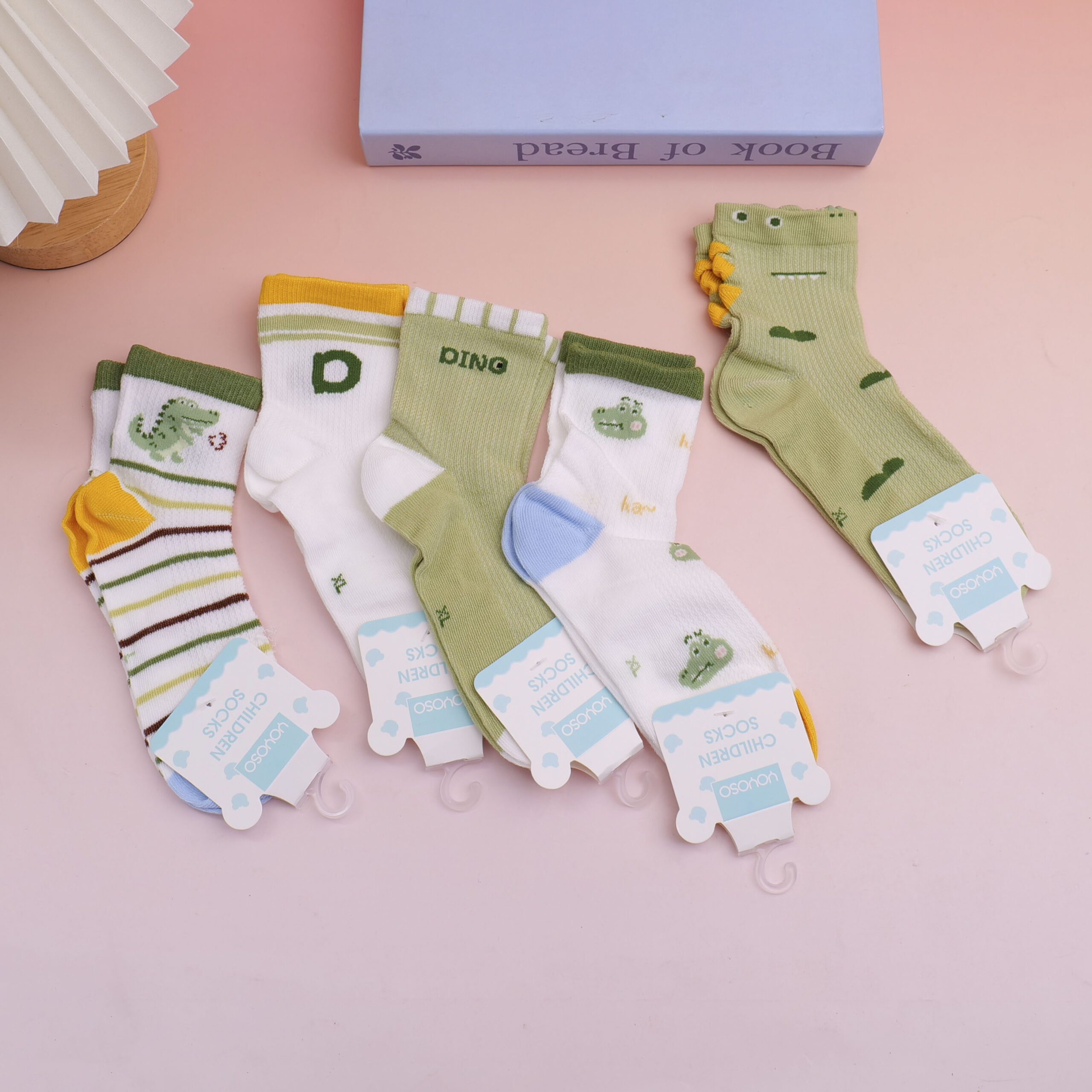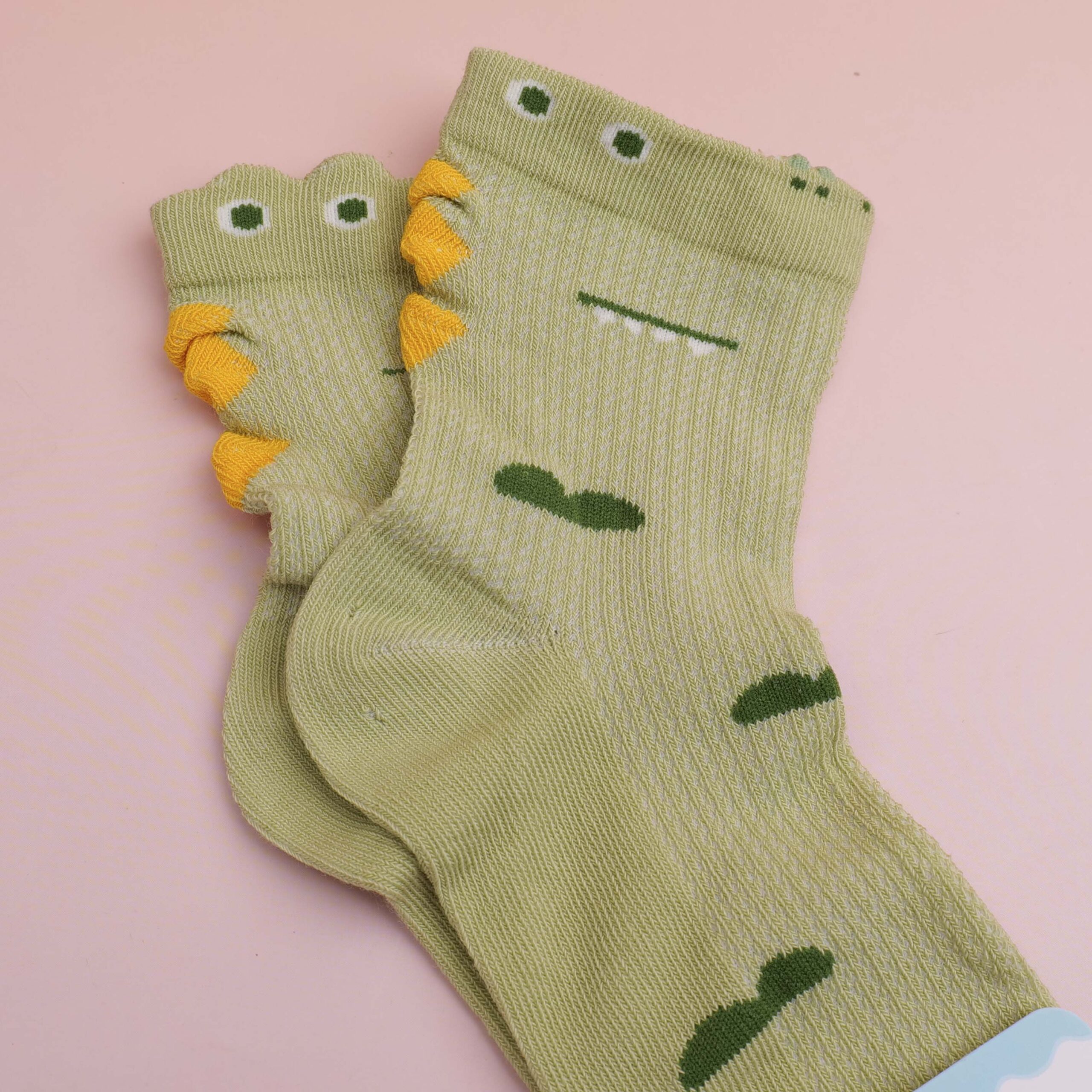 Παιδικές κάλτσες μέχρι τη μέση της γάμπας με θέμα τους δεινόσαυρους, μέγεθος L-σετ 2 ζευγαριών
