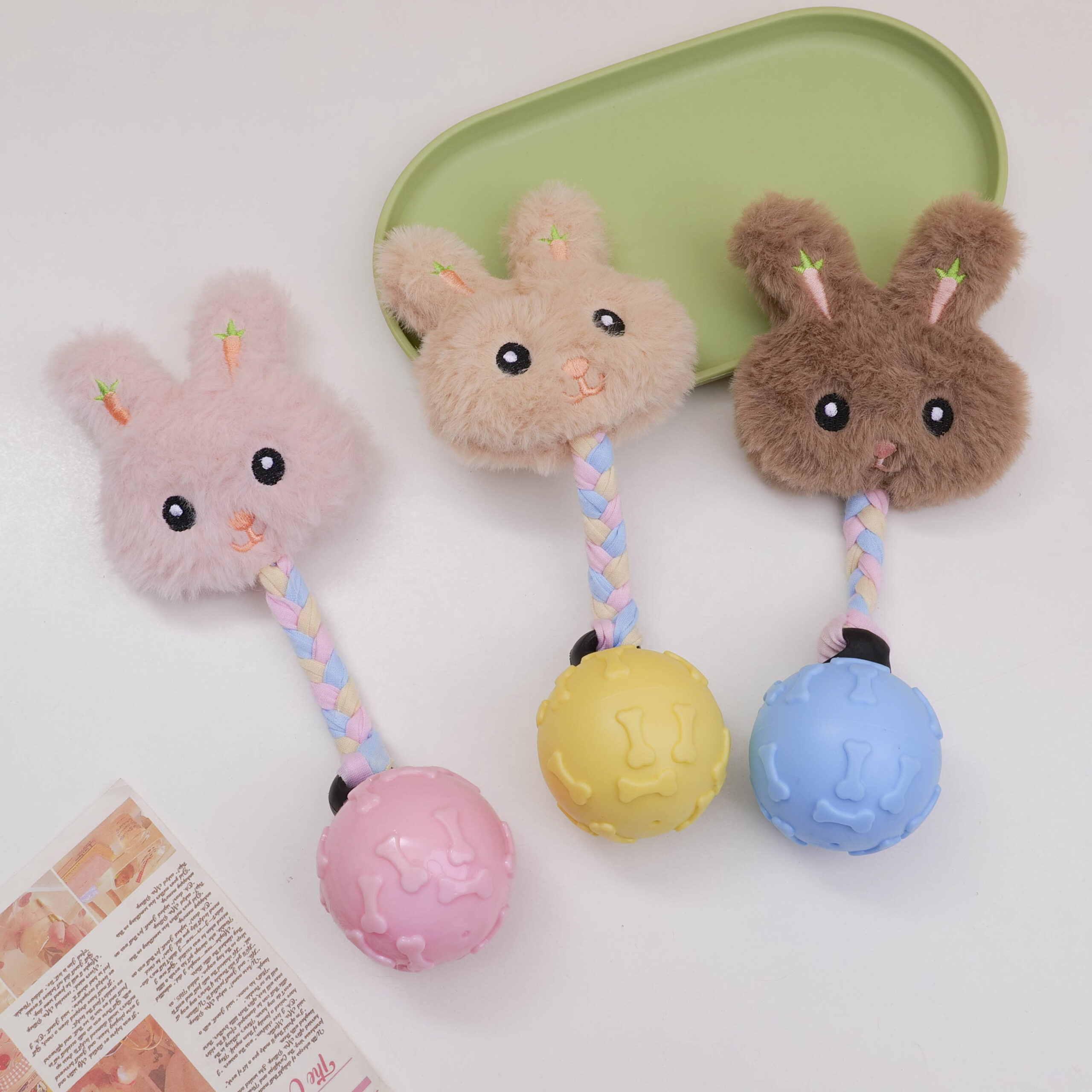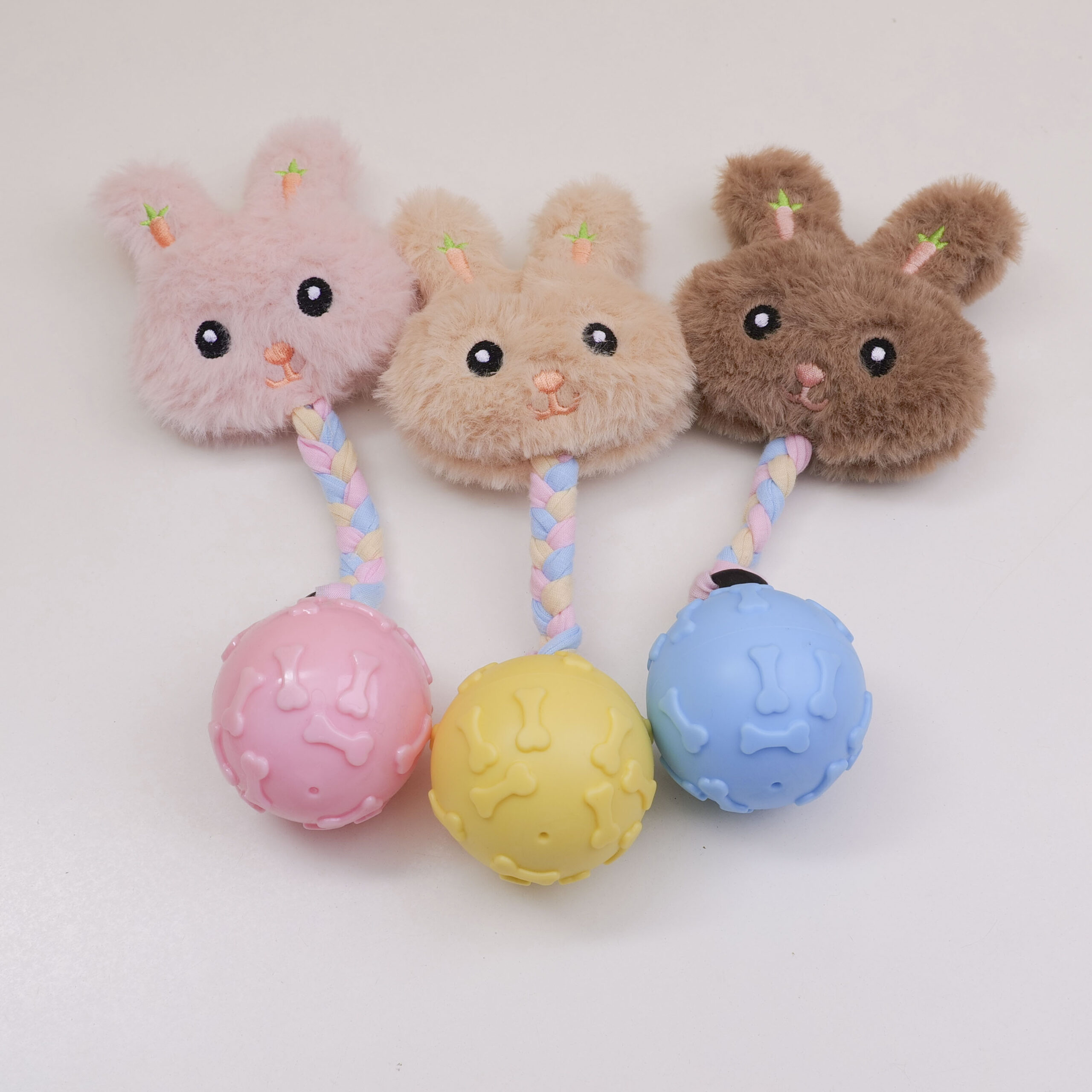 Παιχνίδι για σκύλους με κεφάλι κουνελιού, υφασμάτινη λωρίδα και μπάλα με σχέδιο οστού