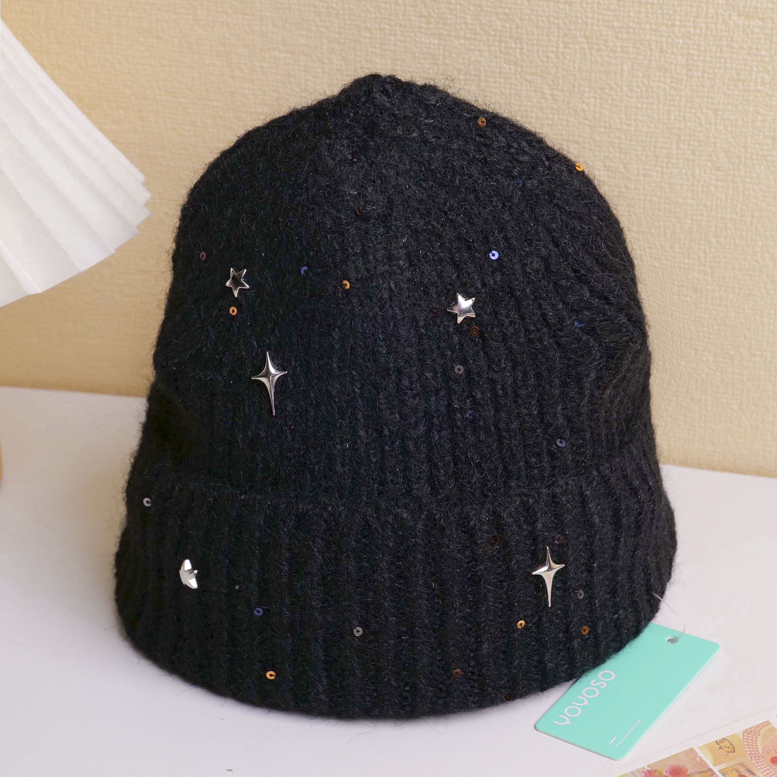 Σκούφος Ενηλίκων με Πούλιες και Αστέρια – Μαύρο
