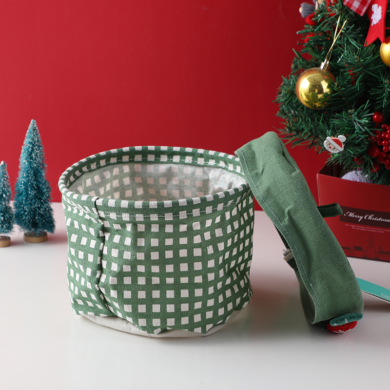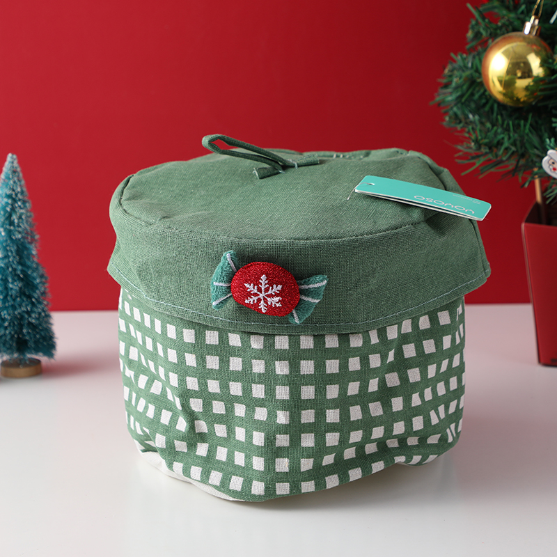 Στρογγυλό χριστουγεννιάτικο κουτί με καρό σχέδιο και καπάκι