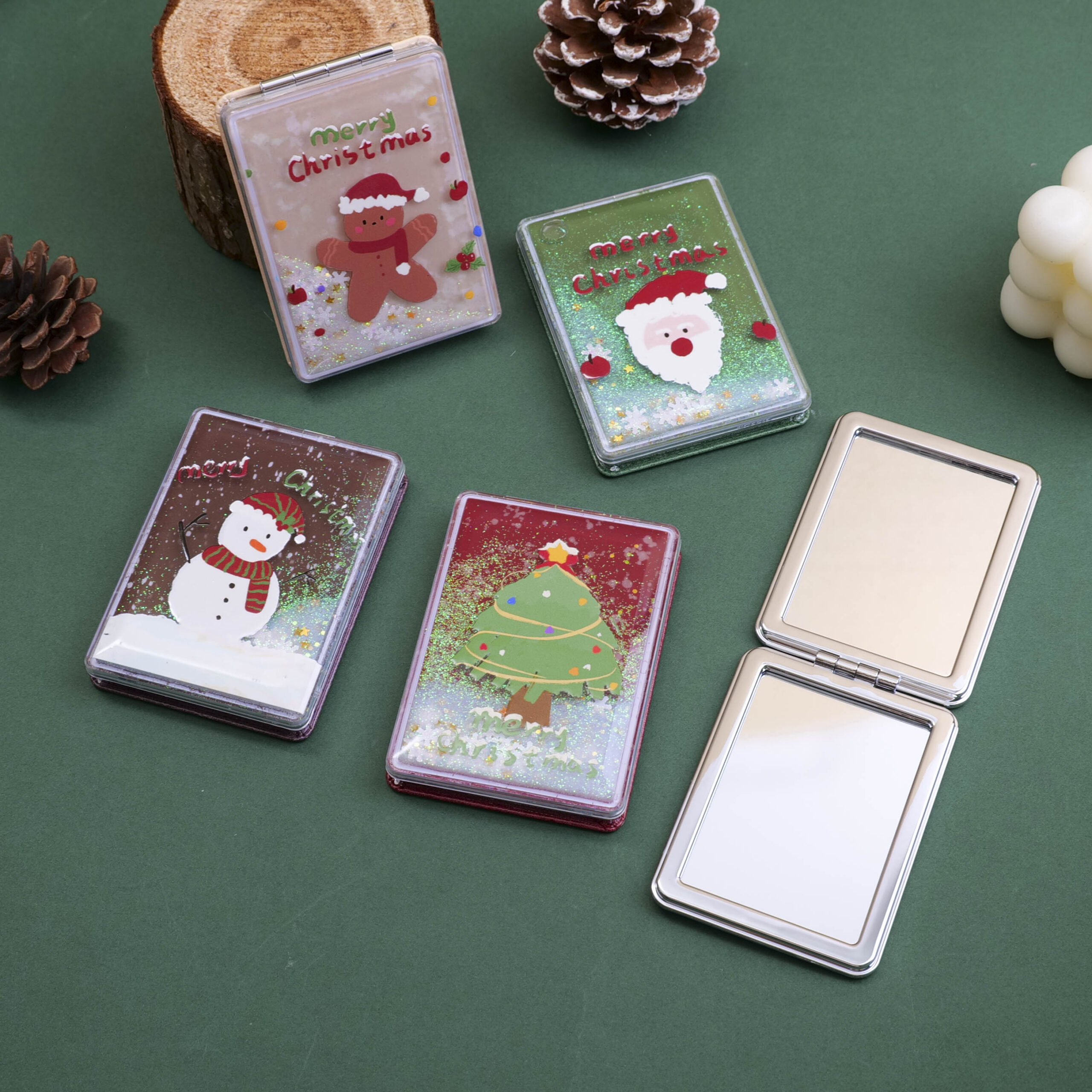Christmas series -Ορθογώνιος καθρέφτης μόδας με ανάγλυφο χριστουγεννιάτικο σχέδιο και κινούμενη άμμο