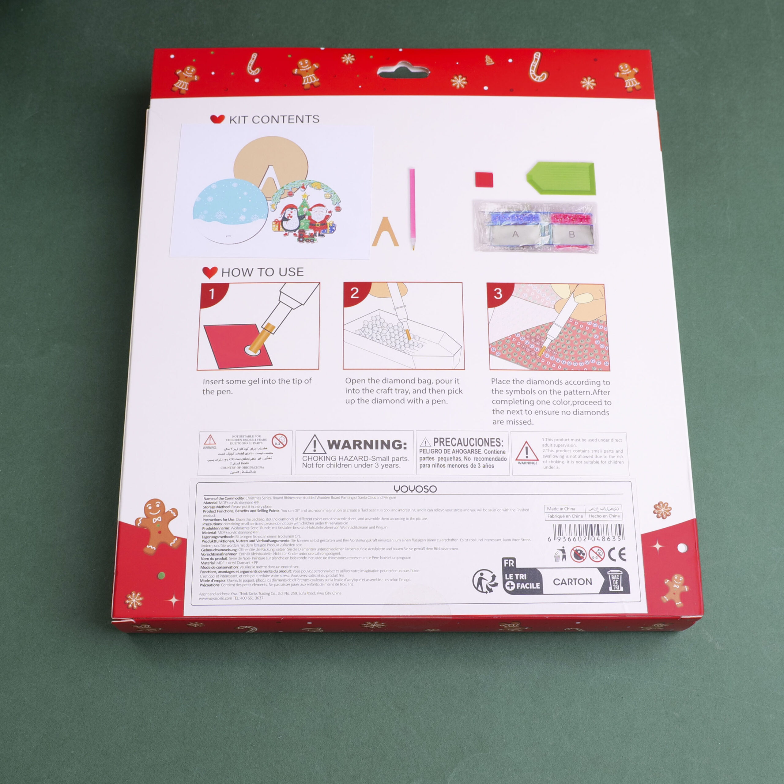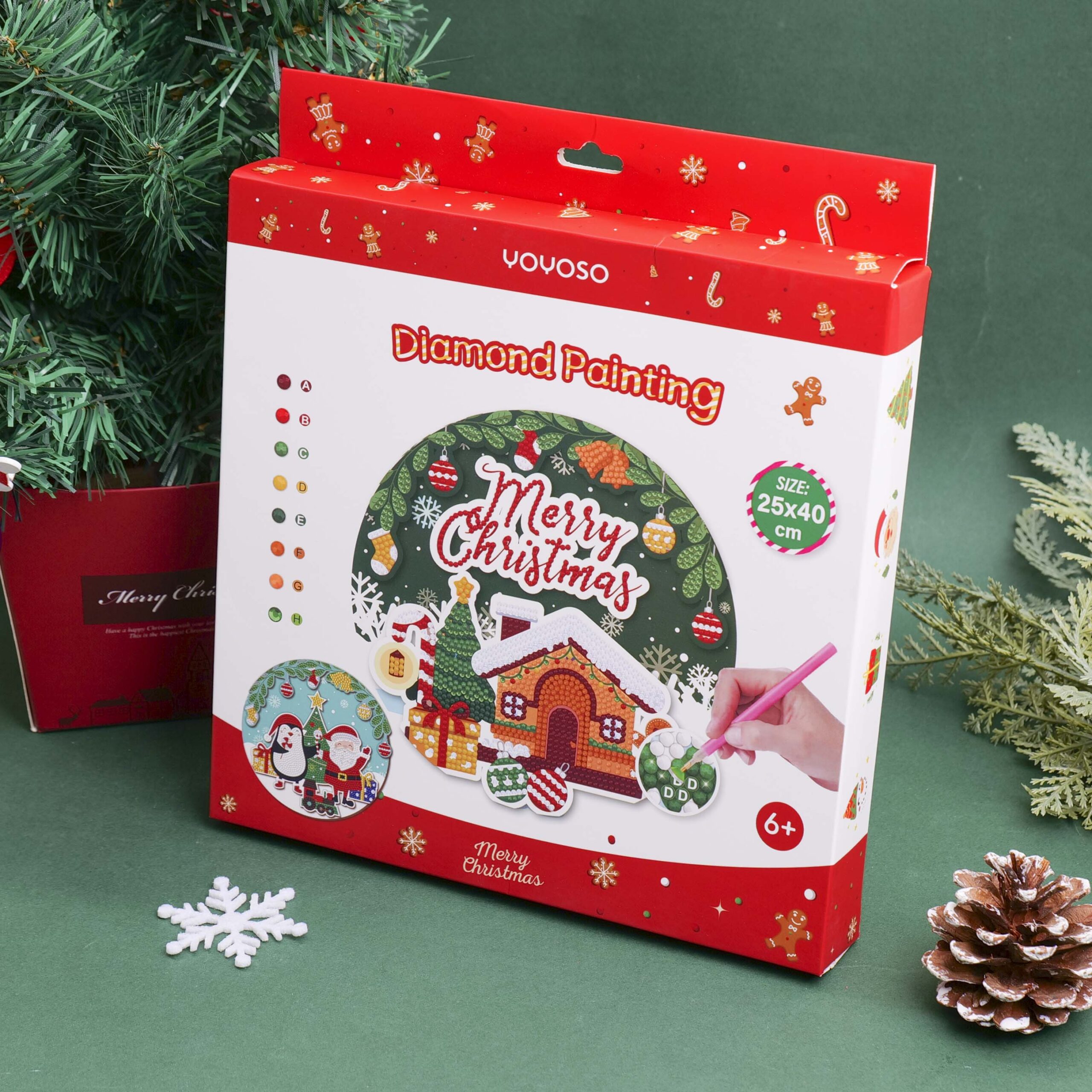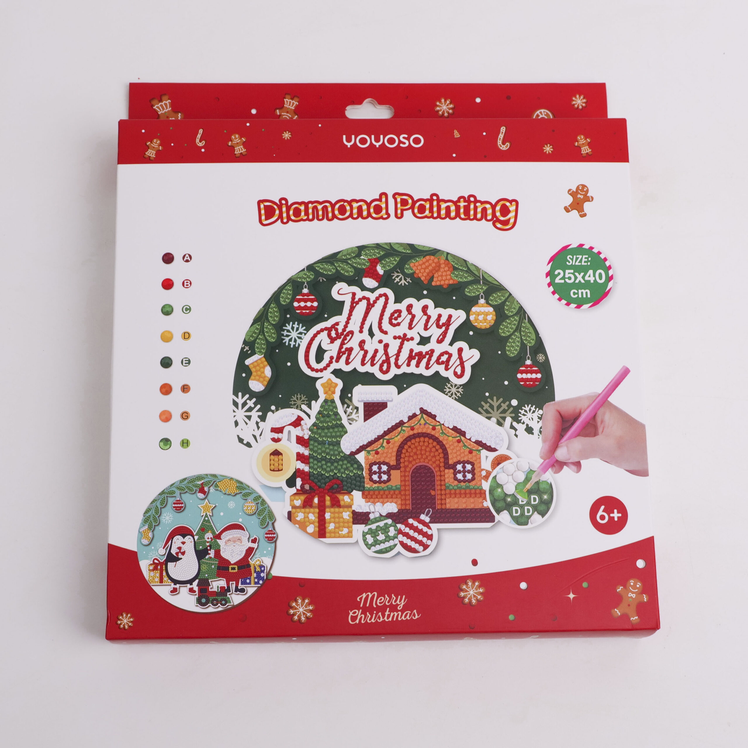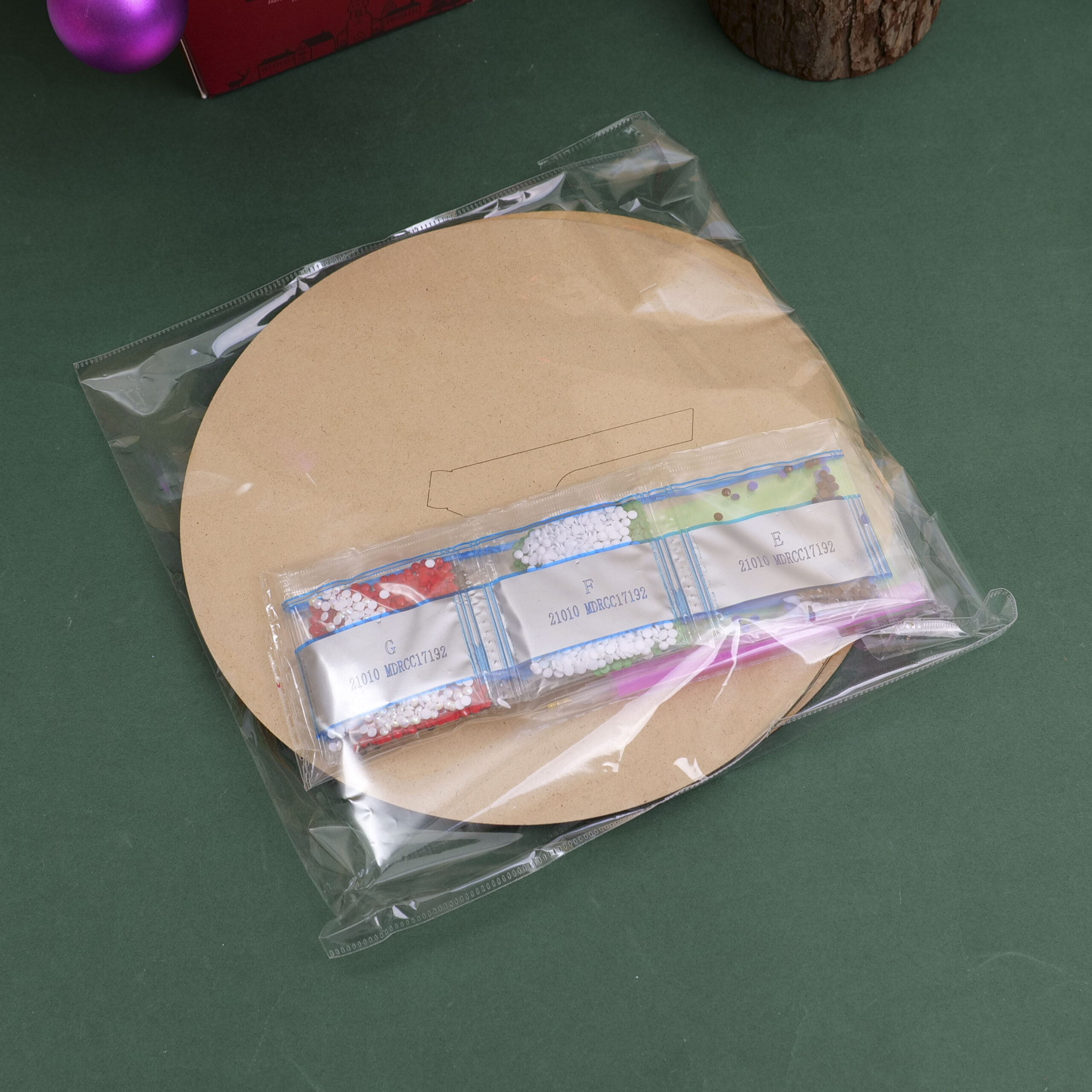 DIY Christmas Series – Χριστουγεννιάτικη Ζωγραφική με Διαμαντάκια Άγιος Βασίλης και Πιγκουίνος σε Στρογγυλή Ξύλινη Βάση