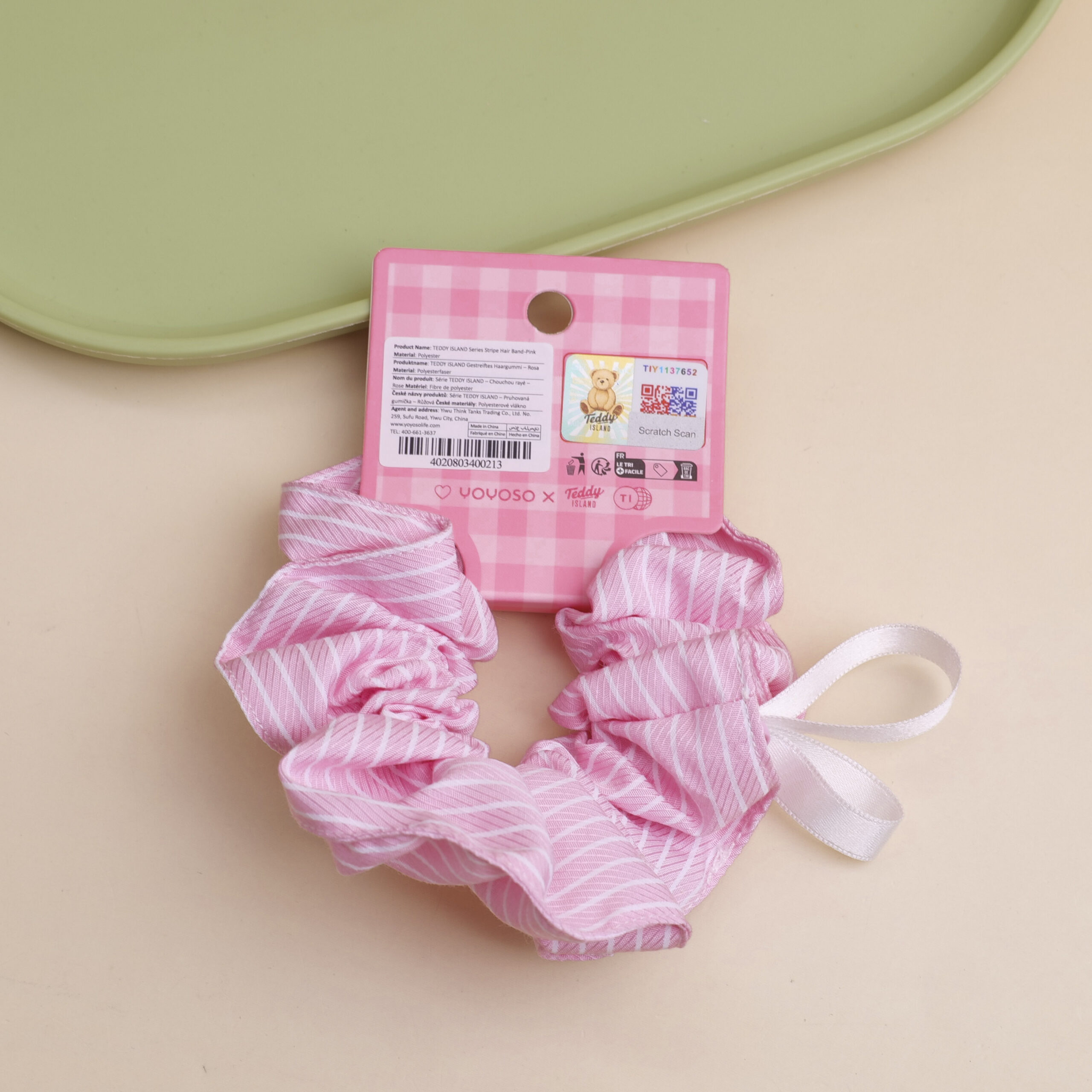 TEDDY ISLAND Series – Λαστιχάκι Μαλλιών Ριγέ Ροζ